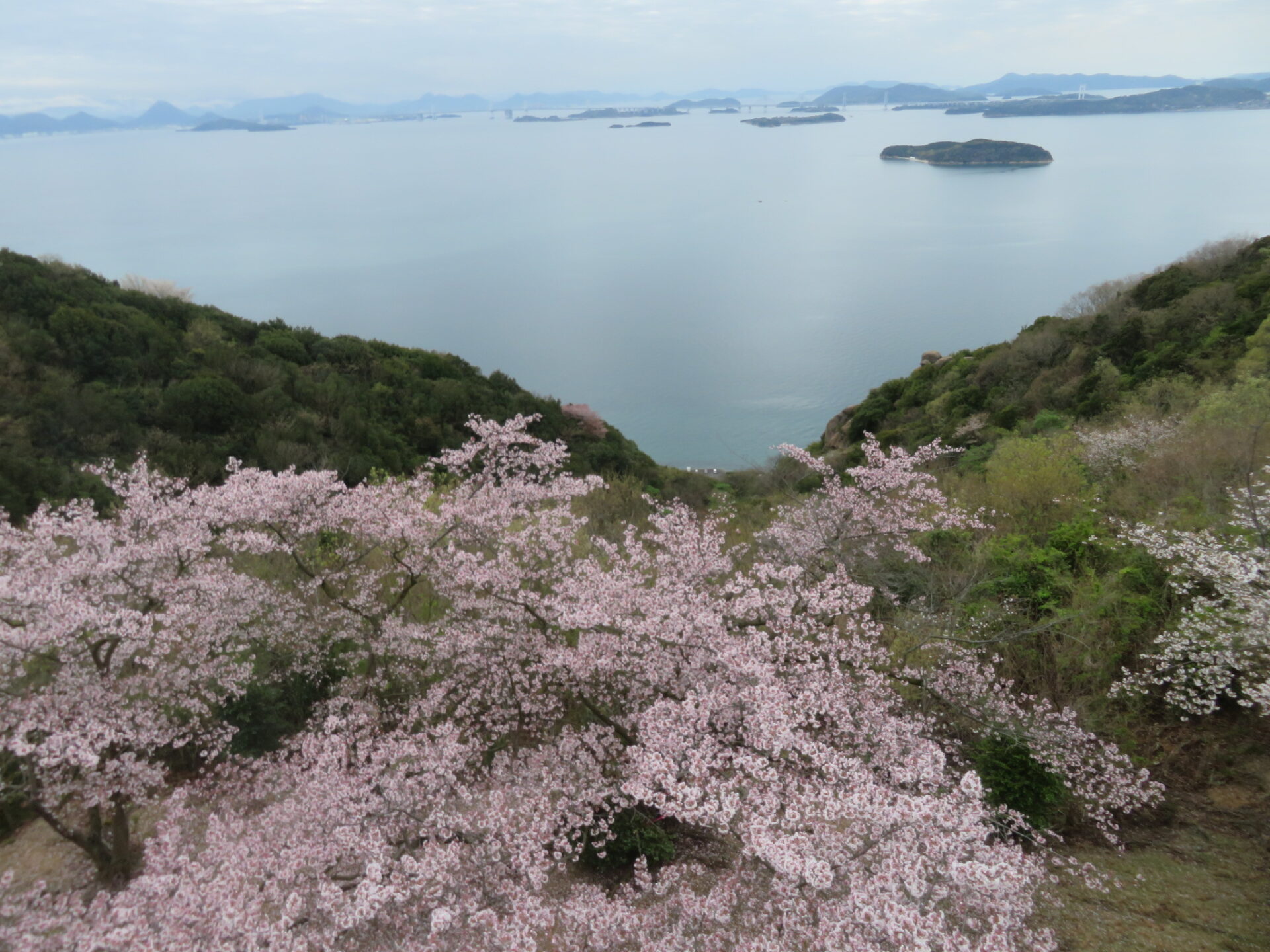誰しもお気に入りの桜スポットがある。私のお気に入りはここ。眼下に広がる桜と瀬戸内海。