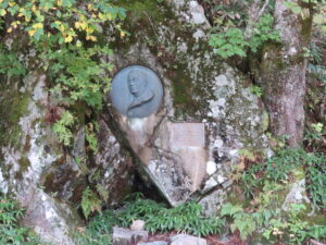 ウエストン牧師は、上高地のすばらしさを世界に広めた人物。現在は多くの外国人観光客も訪れる。ここから更に歩いてかっぱ橋へ向かう。